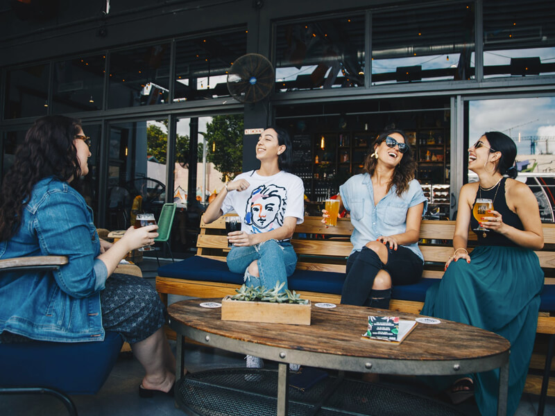 • Vibrant décor and seating arrangements.